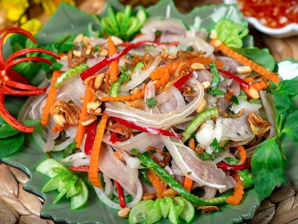 Tai lợn trắng hồng, sần sật trộn cùng dưa chuột xanh giòn, thêm chút cà rốt màu cam tạo màu sắc cho món ăn, điểm xuyết ớt đỏ, rau thơm xanh. Khi ăn cảm nhận rõ vị chua ngọt hài hòa các loại gia vị với độ giòn sần sật của tai heo, ngọt giòn của dưa chuột, thơm bùi của lạc tạo nên cảm giác tươi mát đưa miệng. Món này nguyên liệu và cách làm đơn giản, giúp cân bằng vị trong mâm cỗ ngày Tết.