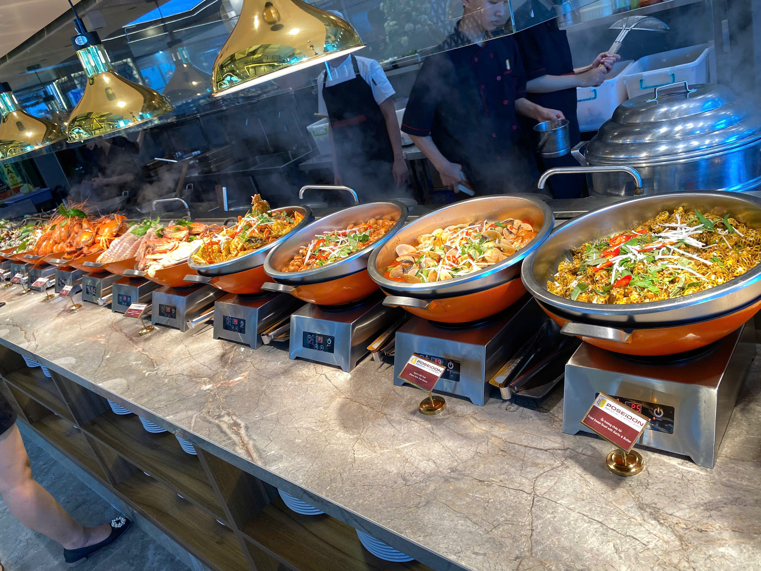 Không chỉ đẹp về không gian, Poseidon Bình Dương còn khiến thực khách ấn tượng bởi thiên đường ẩm thực gần 200 món được tuyển chọn và chế biến liên tục.