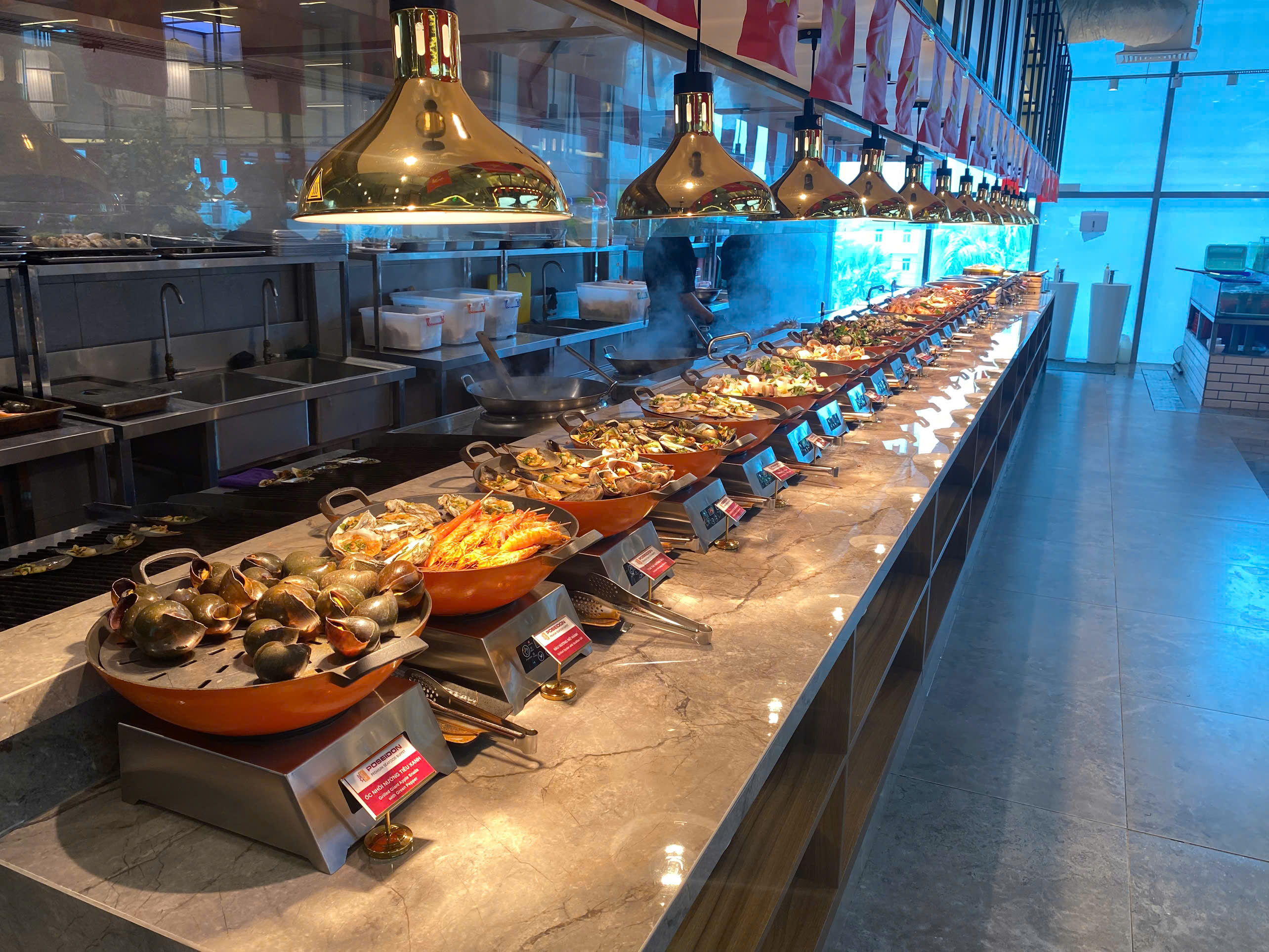 Thực khách thoải mái lấy món với quầy line hải sản cực dài và rộng