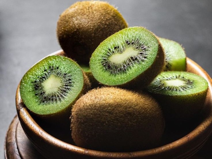 Quả kiwi là một loại trái cây nhập khẩu từ New Zealand, nổi tiếng với hàm lượng vitamin C cao, khoảng 90,1mg cho mỗi 100g. Trong kiwi còn giàu vitamin E, vitamin K, chất chống oxy hóa, axit béo omega-3 và enzym actinidin, có tác dụng hỗ trợ tiêu hóa, giảm viêm, làm lành vết thương và tăng cường hệ miễn dịch. Quả kiwi có vị chua ngọt, thơm mát, có thể ăn tươi hoặc làm sinh tố, salad, kem, sữa chua… Nên ăn quả kiwi sớm khi nó chín và chỉ cắt ra trước khi ăn vì cắt ra để lâu sẽ làm giảm lượng vitamin C.
