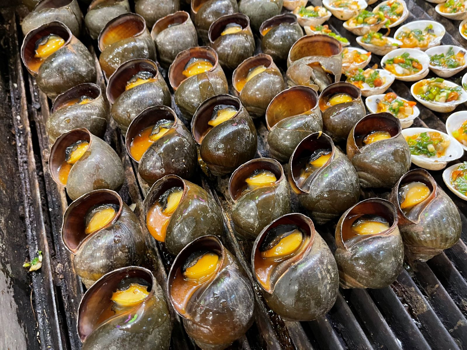 Ốc nhồi được nướng trên bếp của nhà Po cực thơm
