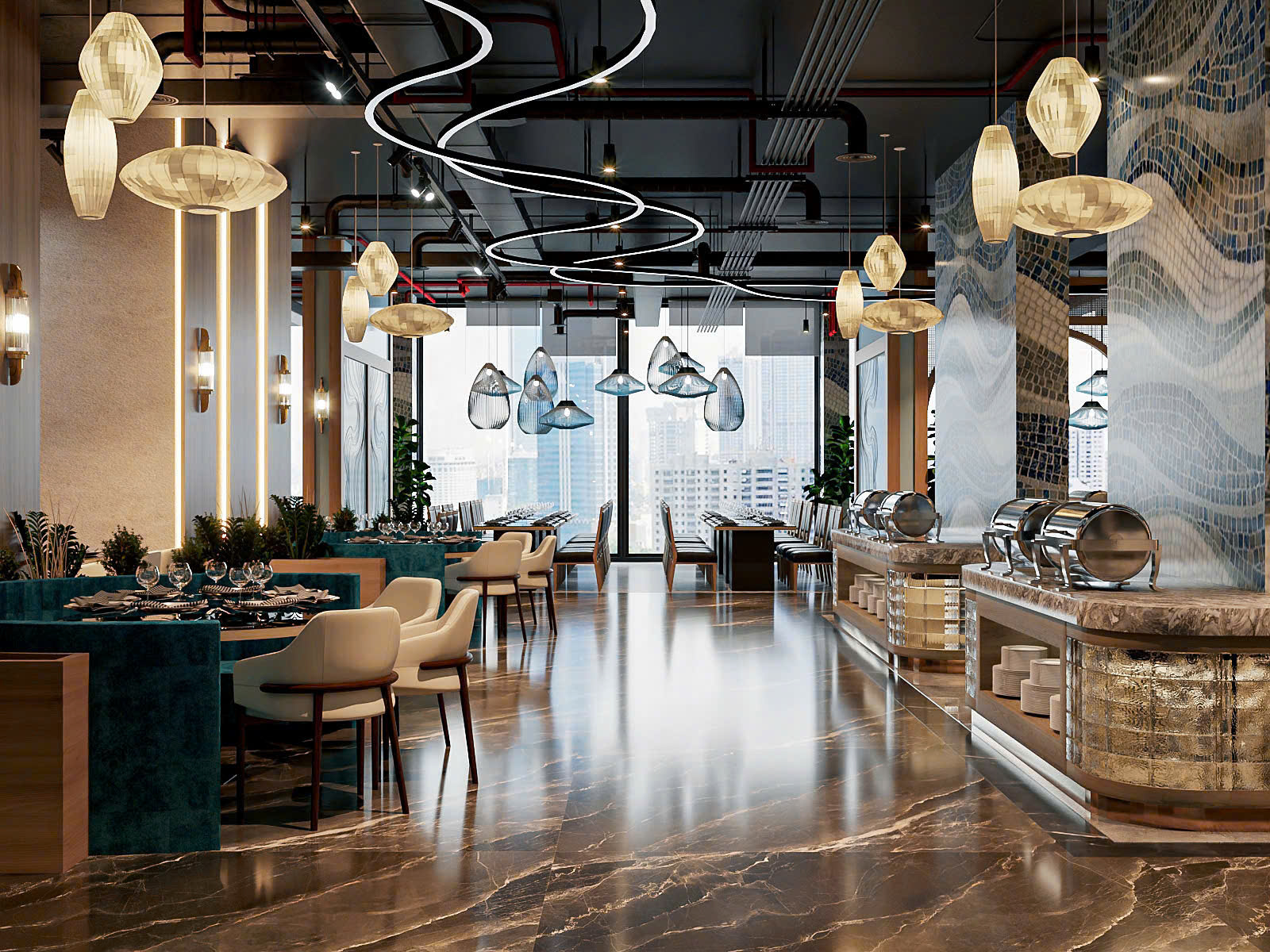 Ngay từ những phối cảnh đầu tiên, Poseidon Bắc Ninh đã khiến nhiều người trầm trồ. Không gian được thiết kế sang trọng, hiện đại nhưng vẫn giữ trọn hơi thở biển cả – đặc trưng đã làm nên tên tuổi Poseidon. Từng đường nét kiến trúc, từng mảng màu sắc đều gợi mở một bữa tiệc thị giác trước khi thực khách bước vào hành trình thưởng thức bữa tiệc hải sản thượng hạng.