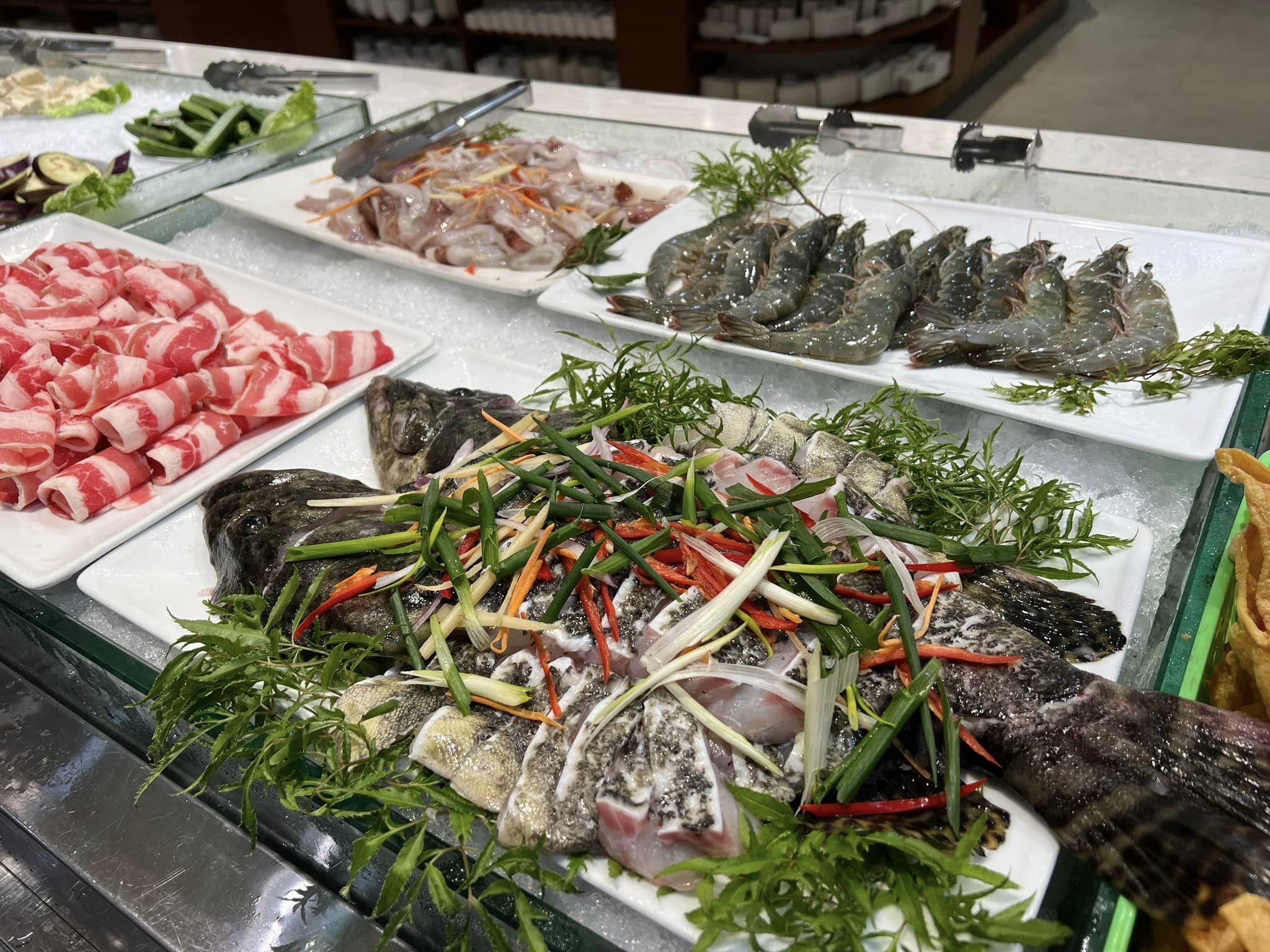 Cá mú trên quầy Buffet lẩu hải sản tại Buffet Poseidon