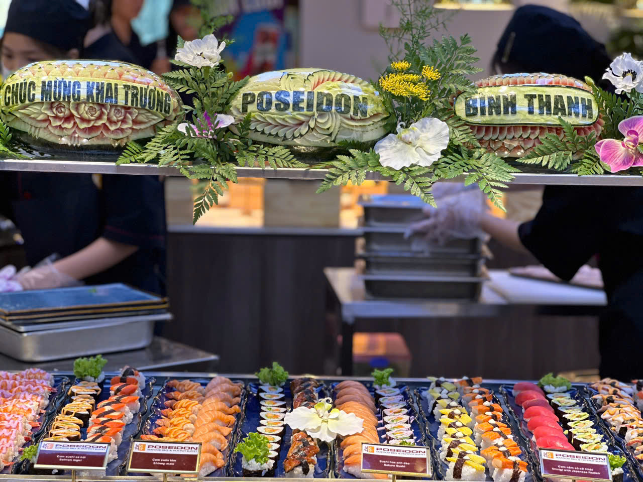 Một góc nhỏ tại quầy sashimi, sushi của Poseidon Bình Thạnh Premium