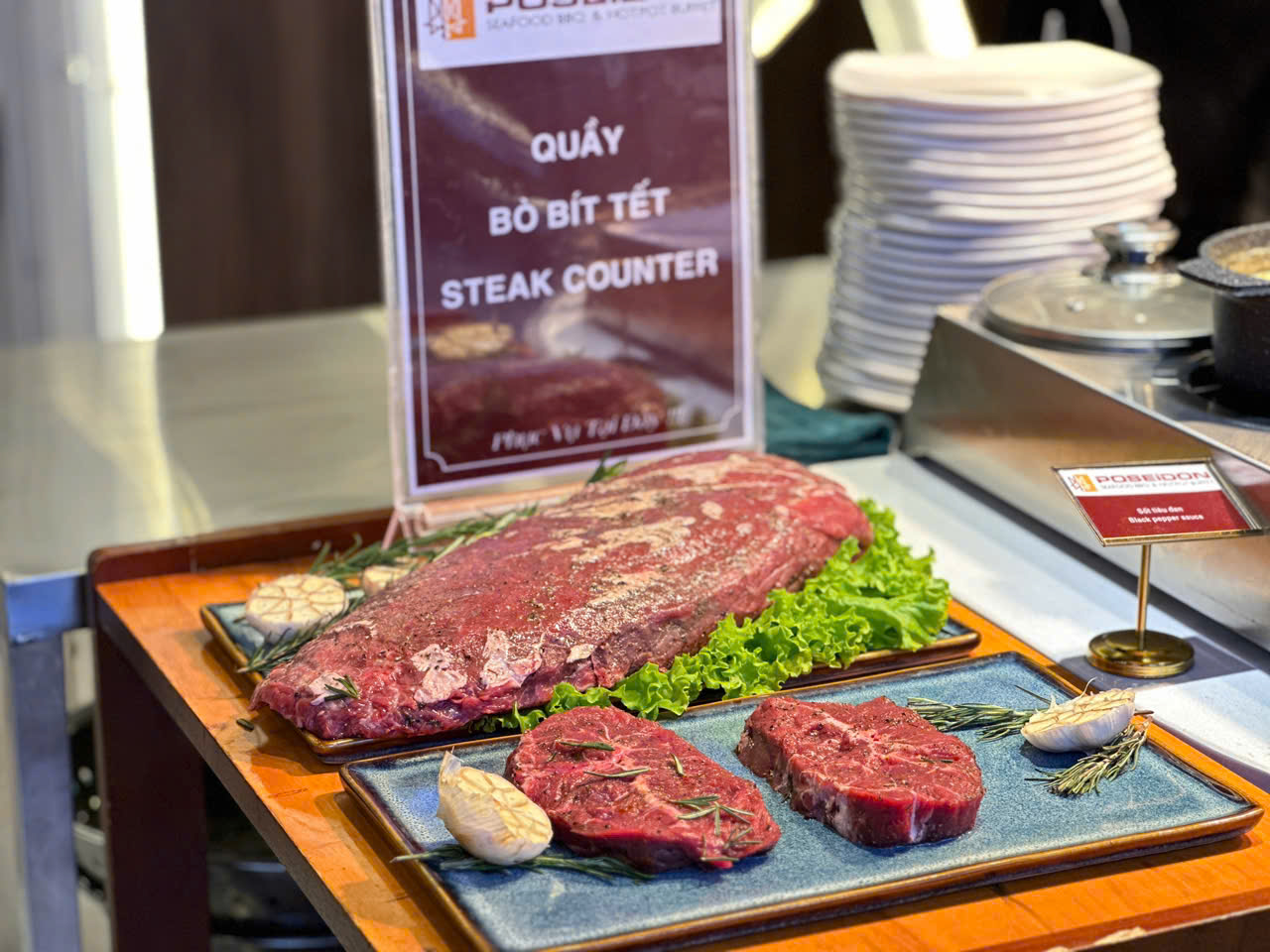Một góc quầy beefsteak tại Poseidon Bình Thạnh Premium