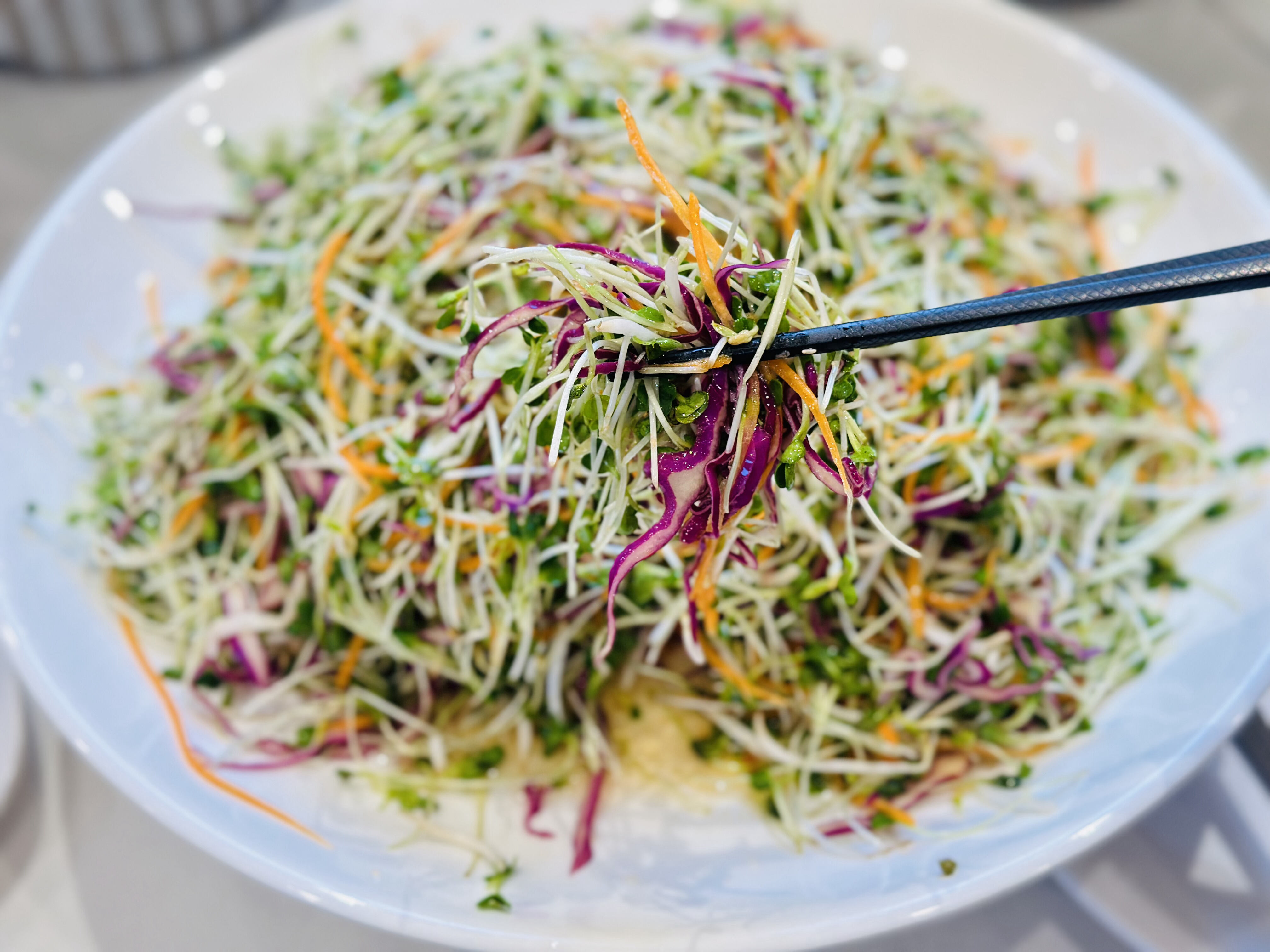 Salad rau mầm và bắp cải tím là món khai vị đặc biệt được yêu thích tại Poseidon