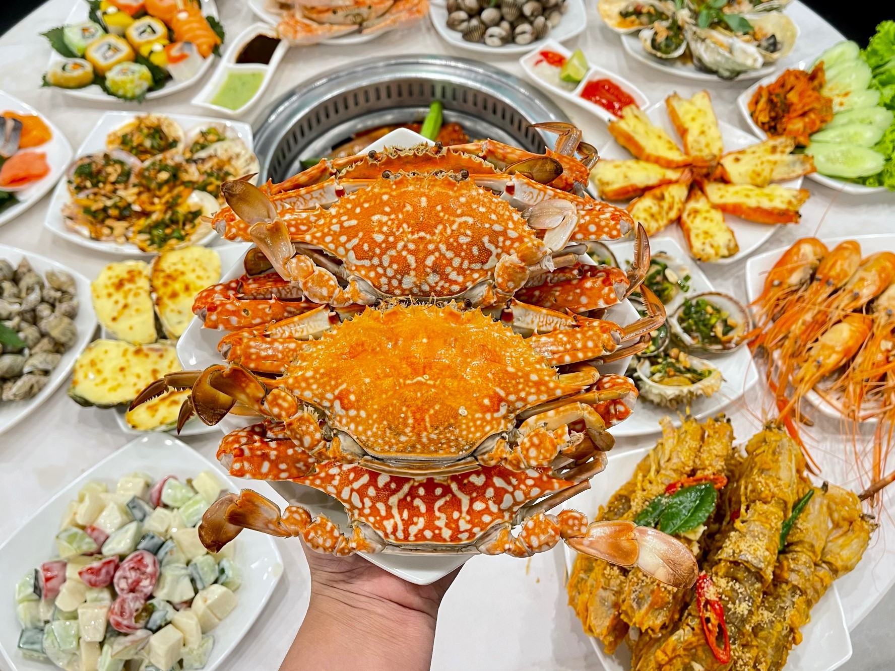 Ghẹ hấp là một trong những điểm nhấn trên quầy live nhà Buffet Poseidon