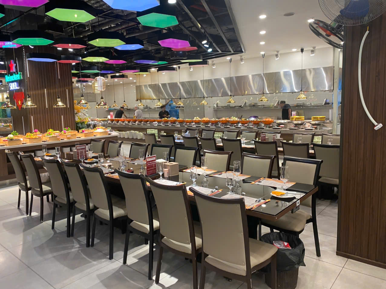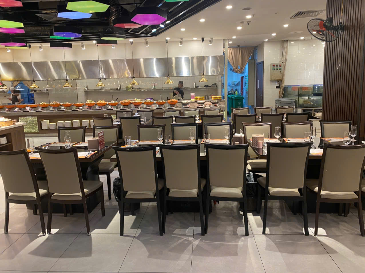 Lối đi thông thoáng giữa các khu vực quầy line và bàn ghế của Poseidon Hà đông