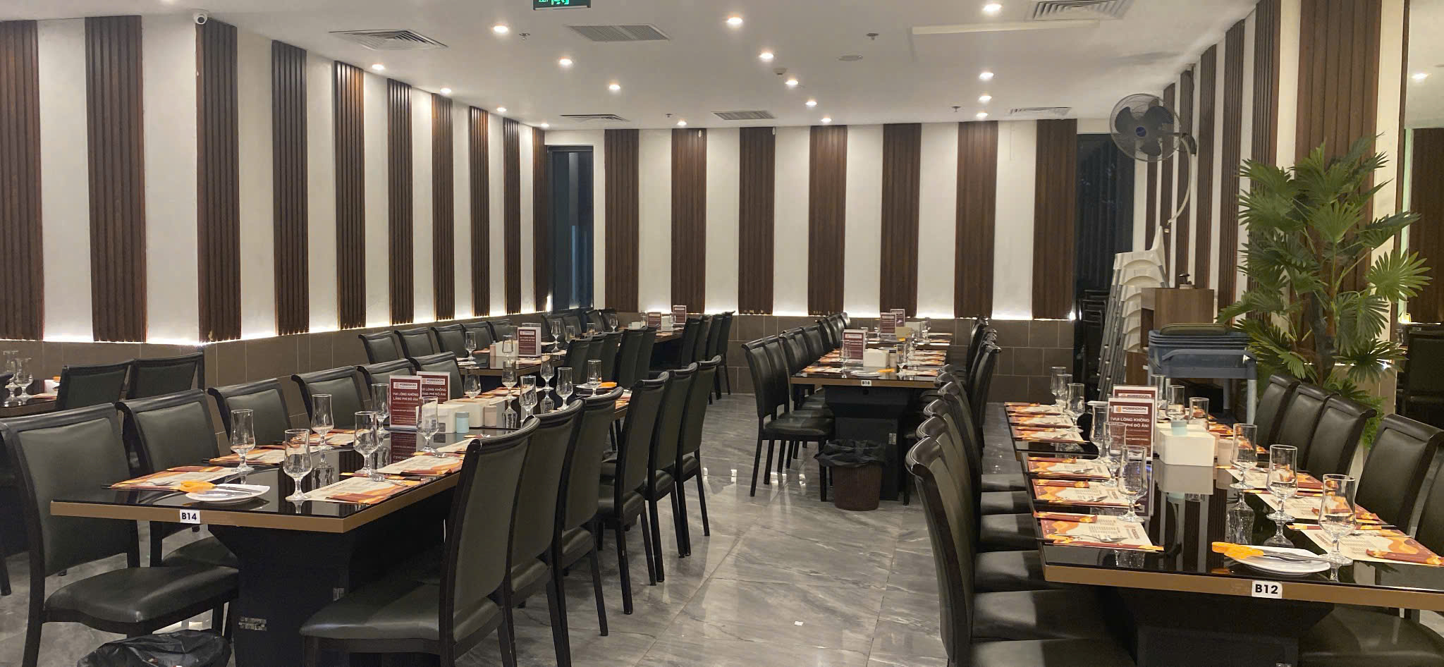 Khu vực bàn ghế tại tầng 5 Lê Văn Lương - Phù hợp với mọi bữa tiệc từ khách đoàn đông cho đến khách nhỏ lẻ