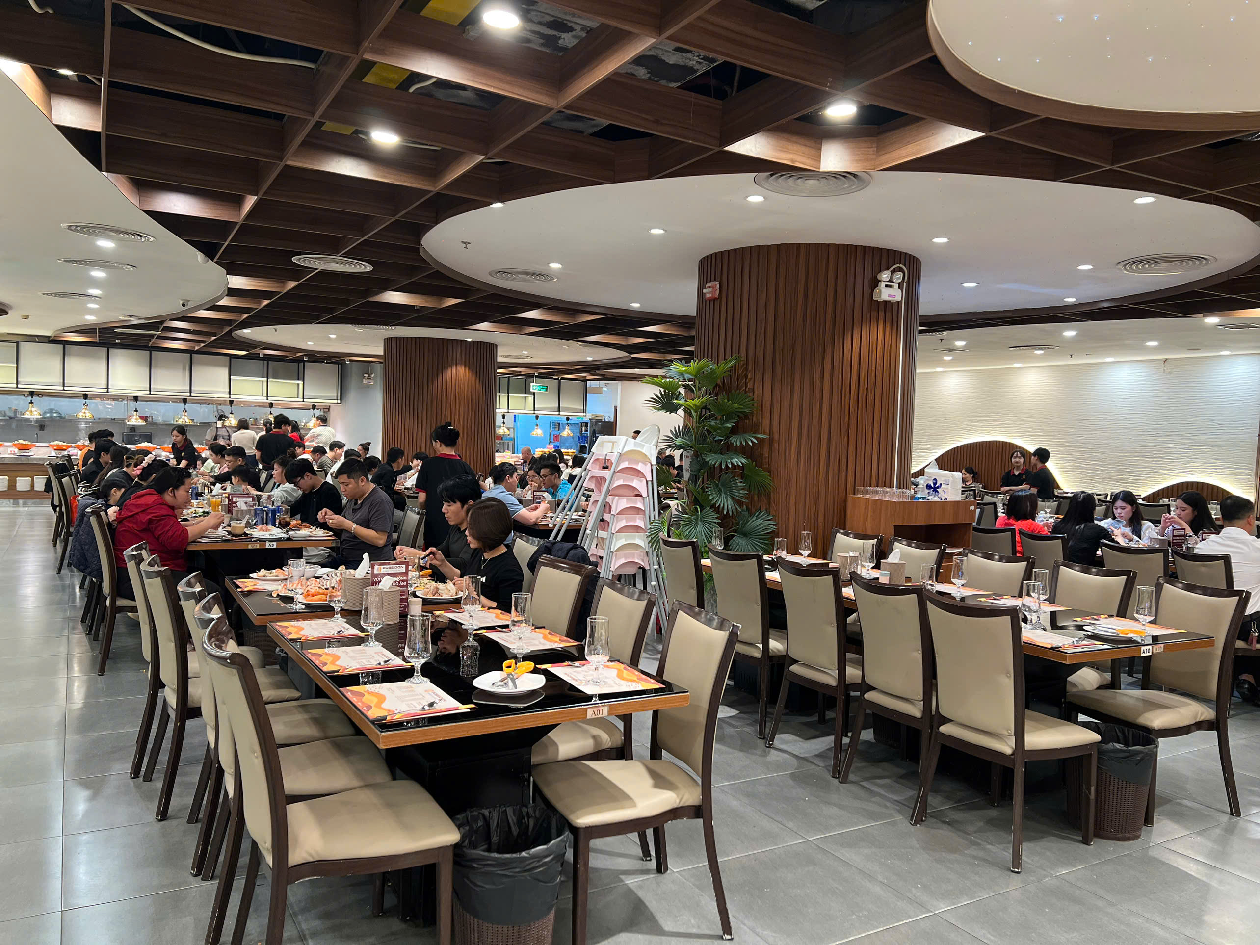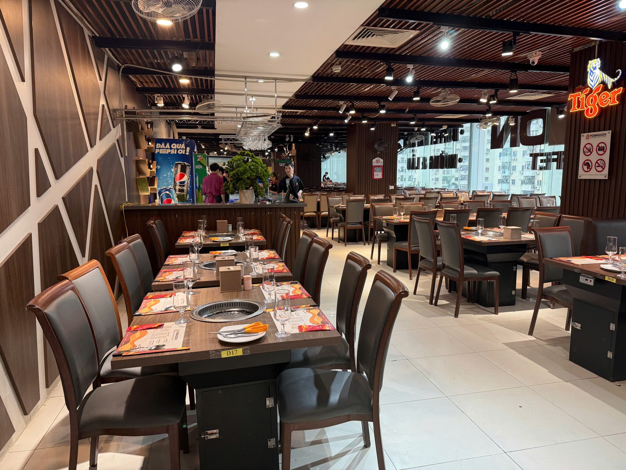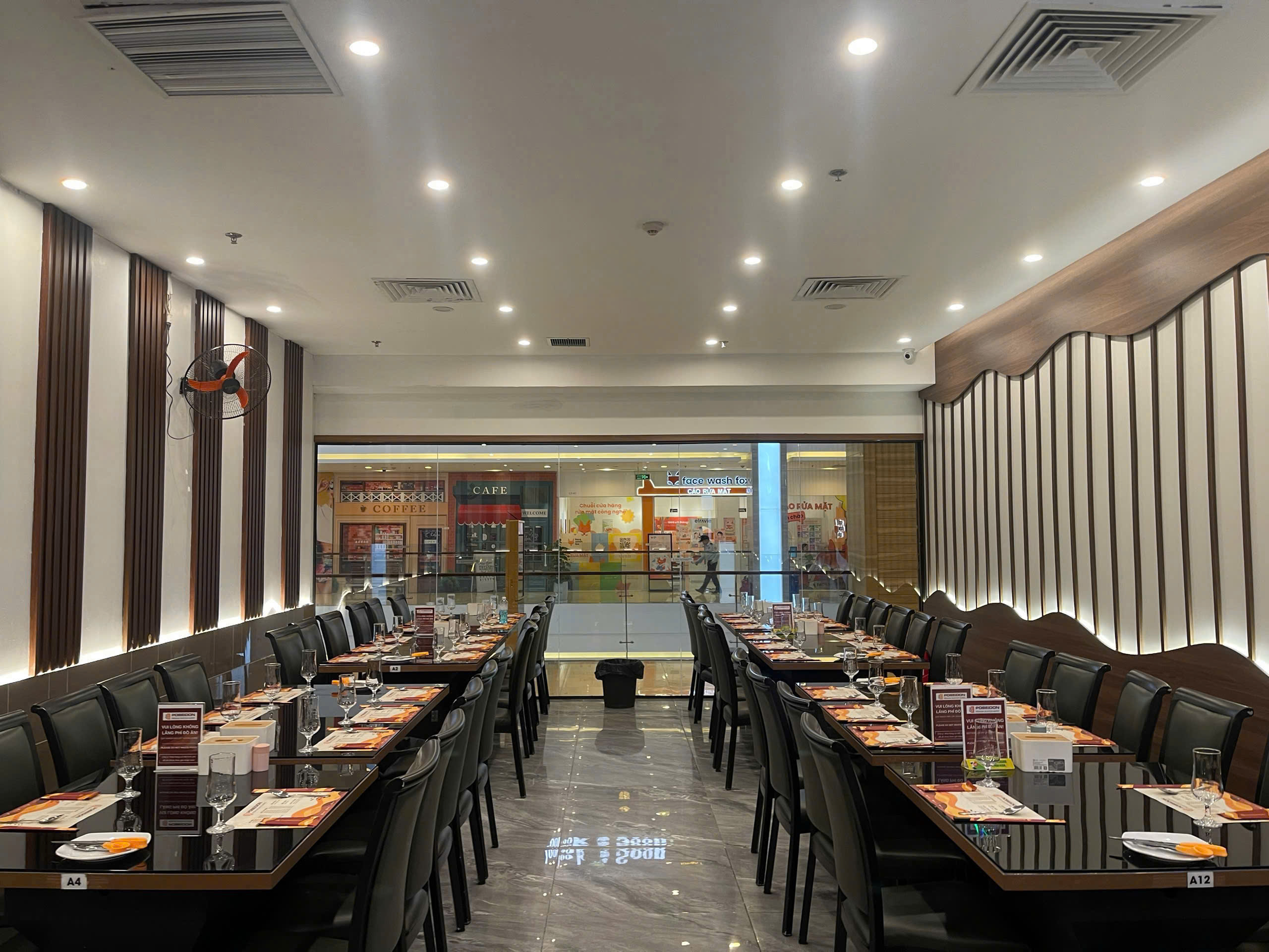 Chi nhánh có 2 tầng tương đương với 2 nhà hàng độc lập, không gian mỗi nhà hàng đều rộng rãi, mỗi tầng hơn 300 chỗ, phong cách thiết kế hiện đại, tầm view cực thoáng, bao quát cung đường Lê Văn Lương, Hoàng Đạo Thuý sầm uất, sôi động. Có phòng riêng dành cho tiệc gia đình & họp nhóm đảm bảo sự riêng tư.