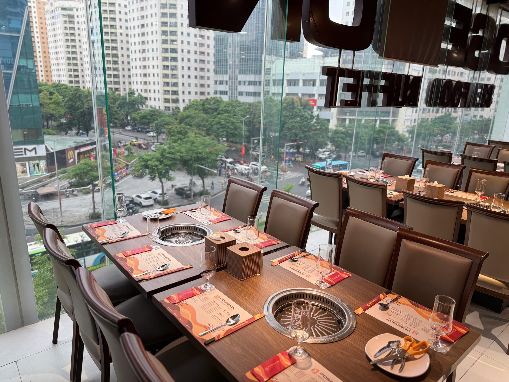 Khu vực bàn rộng thoáng, có các vách ngăn nhẹ, đảm bảo sự riêng tư mà vẫn tiện di chuyển (Poseidon Times City)