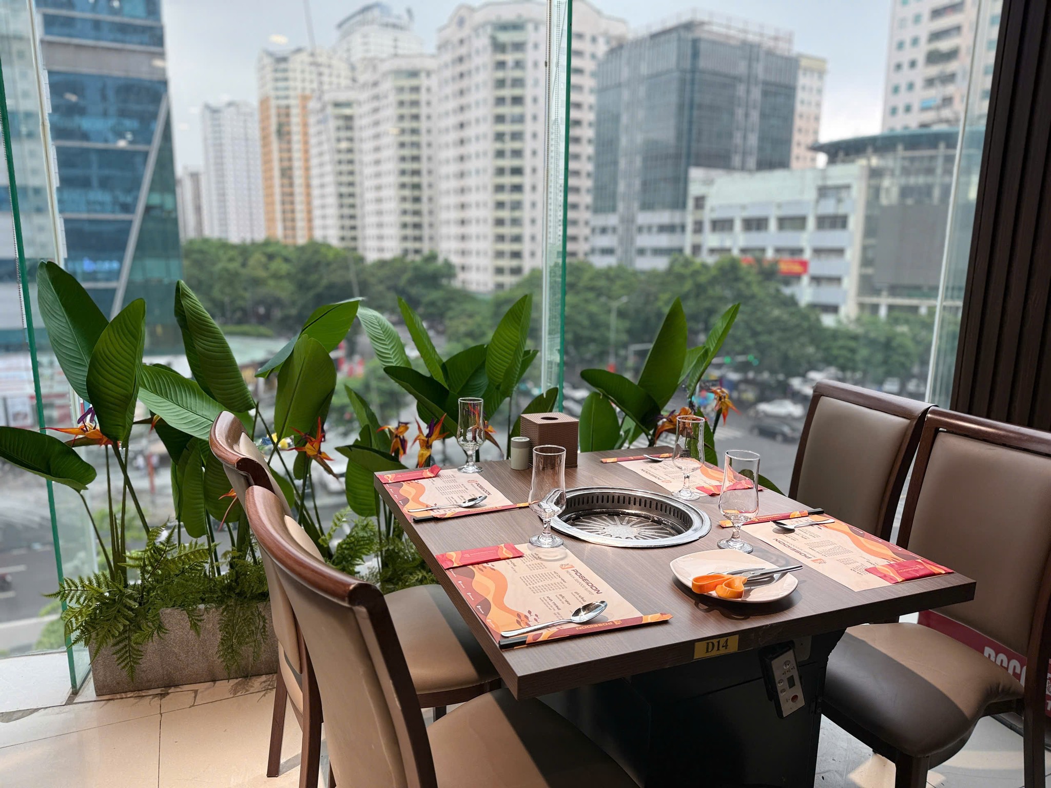 Khu vực bàn ghế có vách ngăn, vừa riêng tư vừa thông thoáng tại Poseidon Mỹ Đình