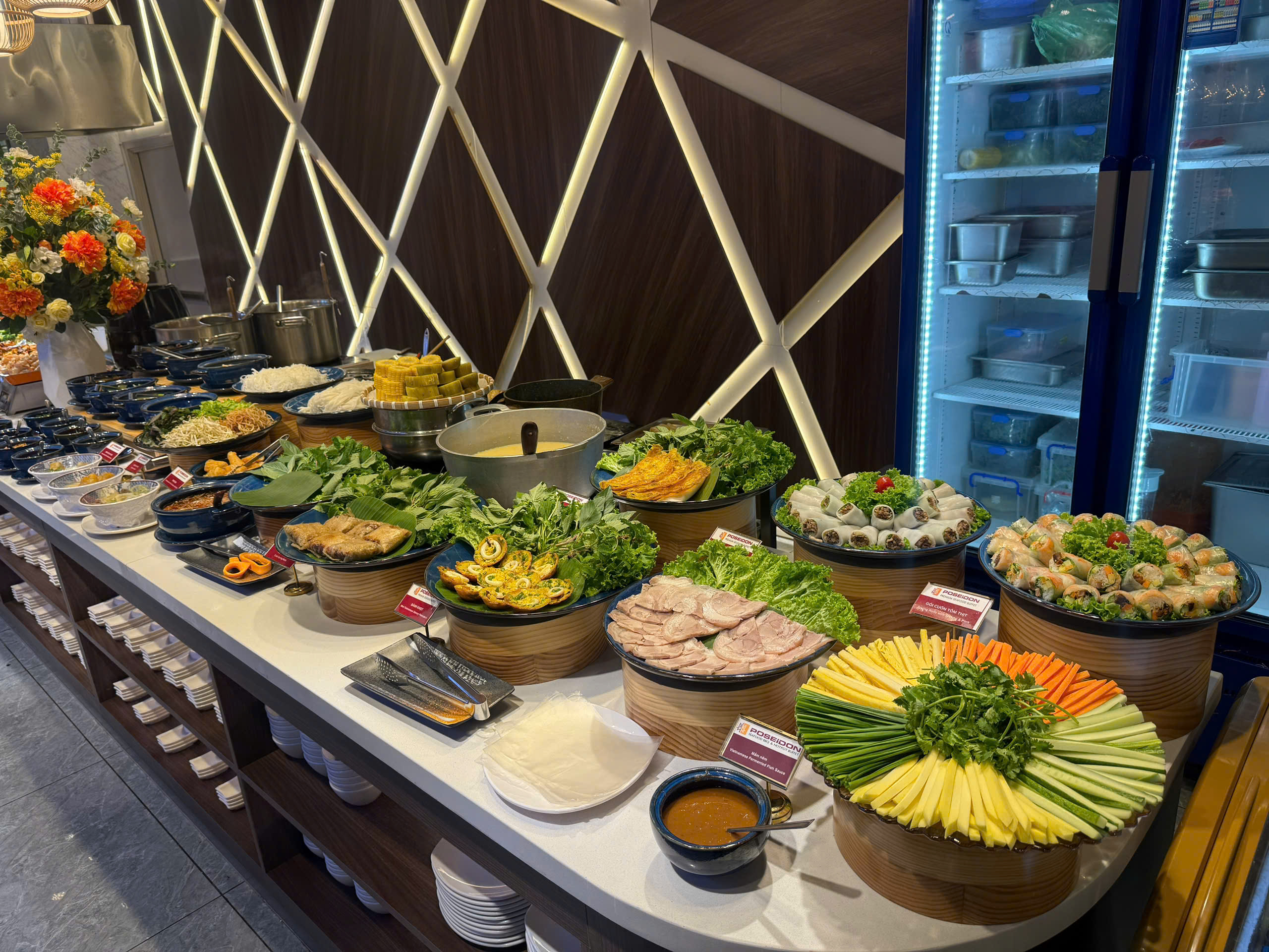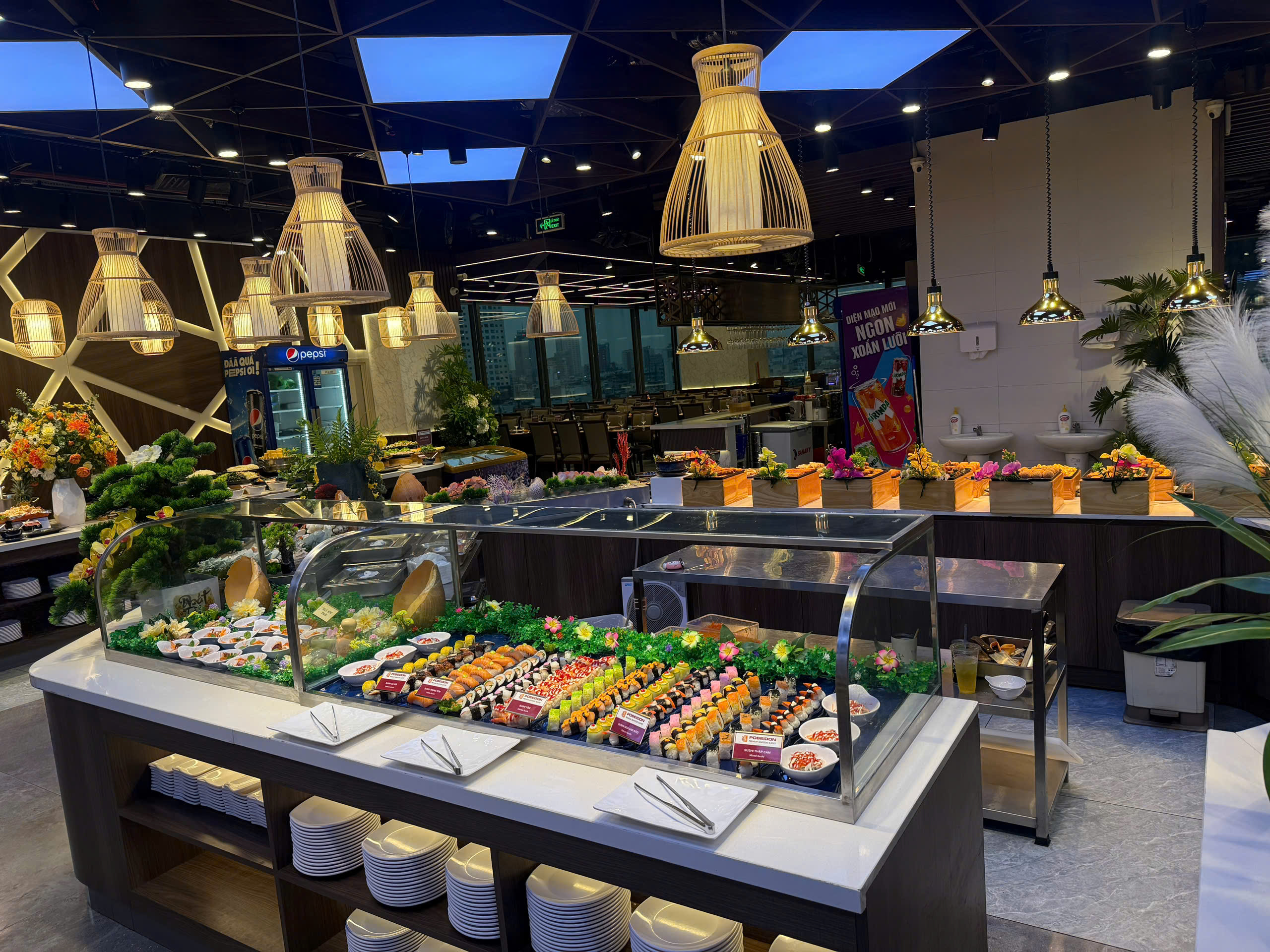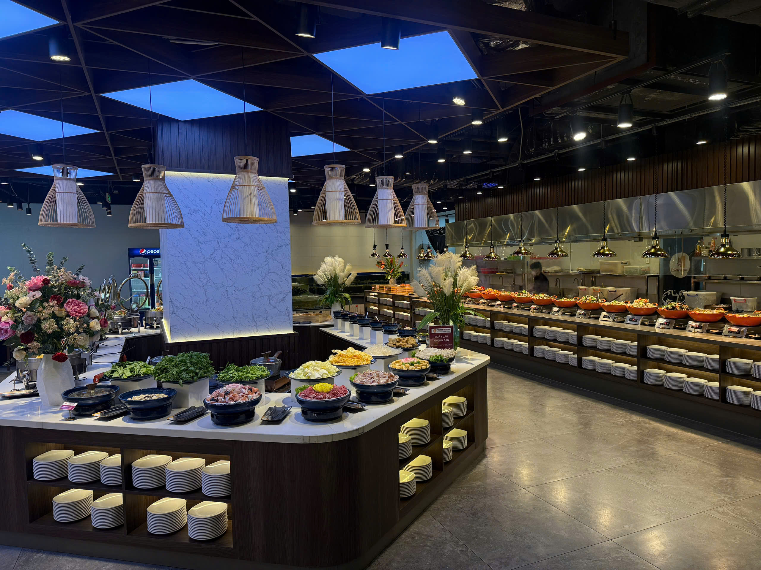 Không gian quầy line thoáng, nhiều khu vực được mở rộng, giúp thực khách dễ dàng di chuyển và lấy món