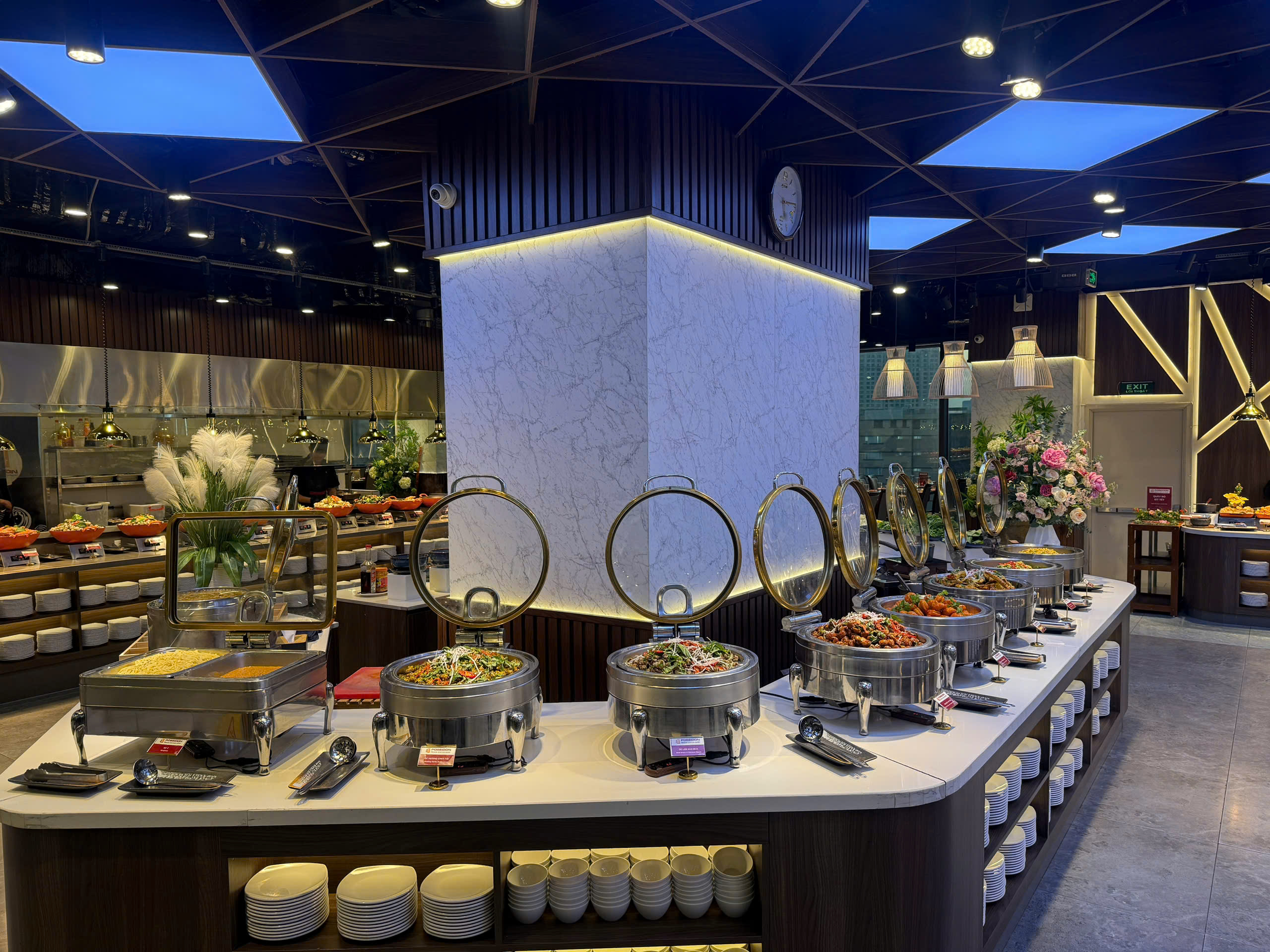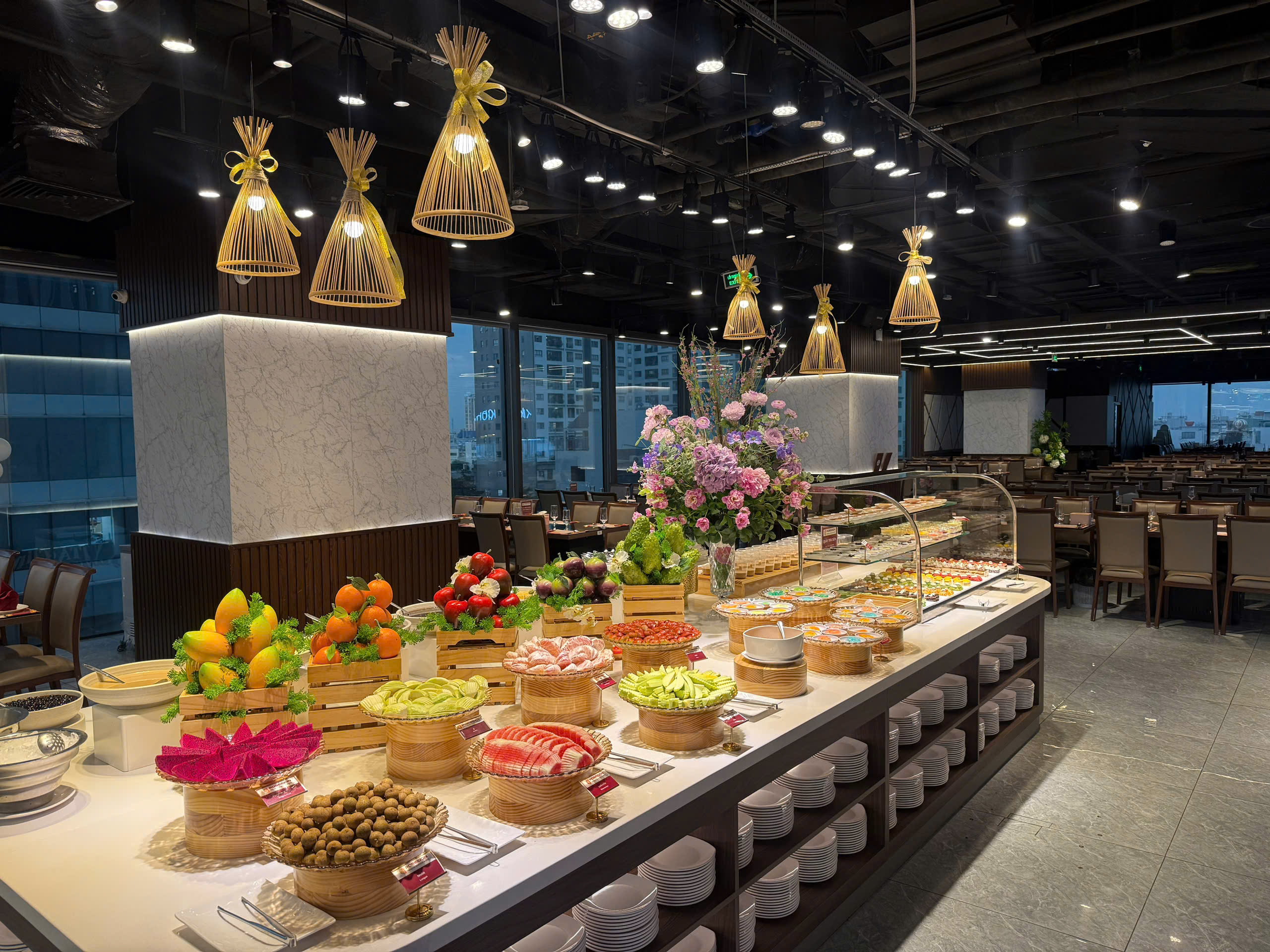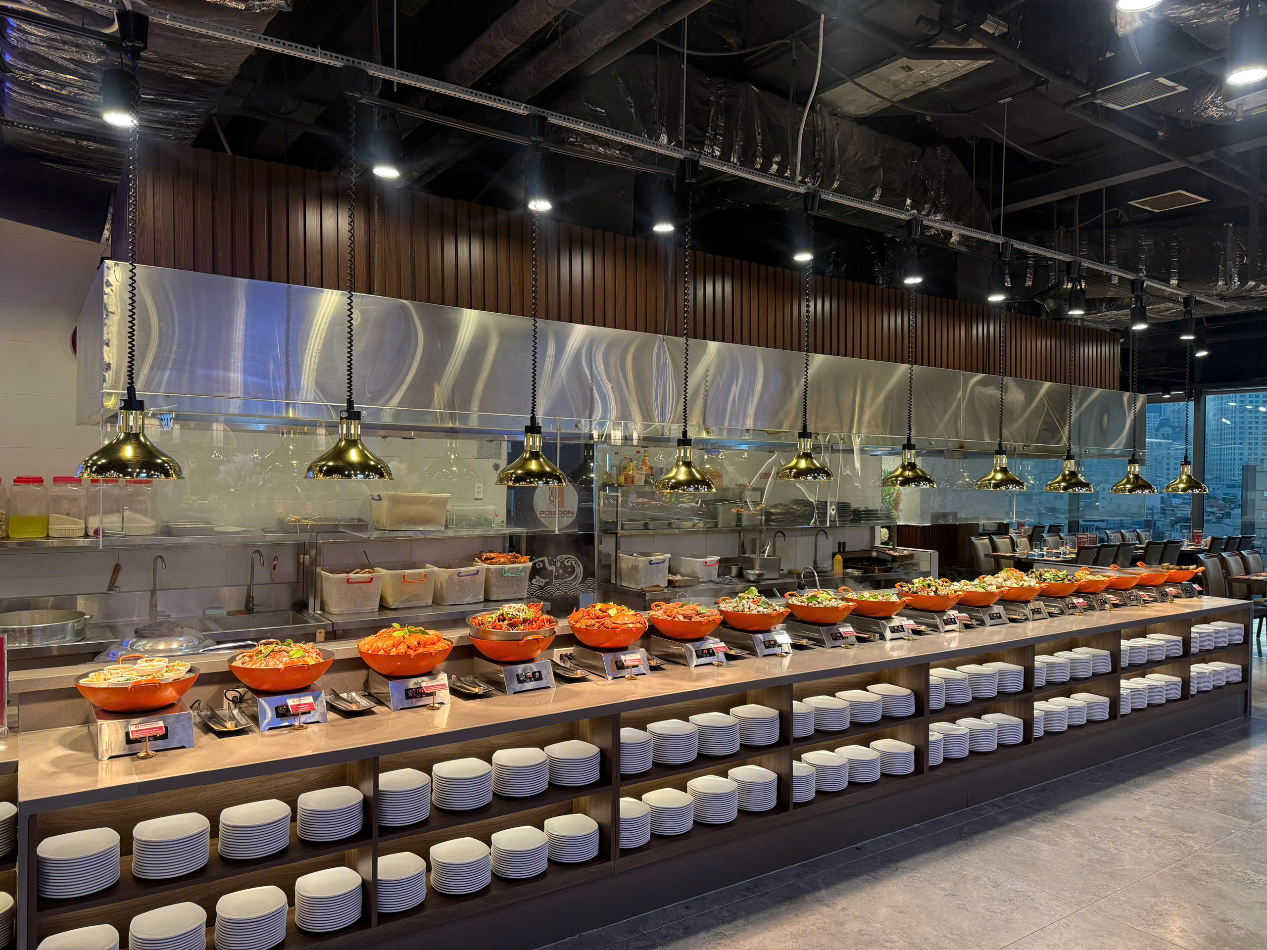 Không gian quầy line thoáng, nhiều khu vực được mở rộng, giúp thực khách dễ dàng di chuyển và lấy món