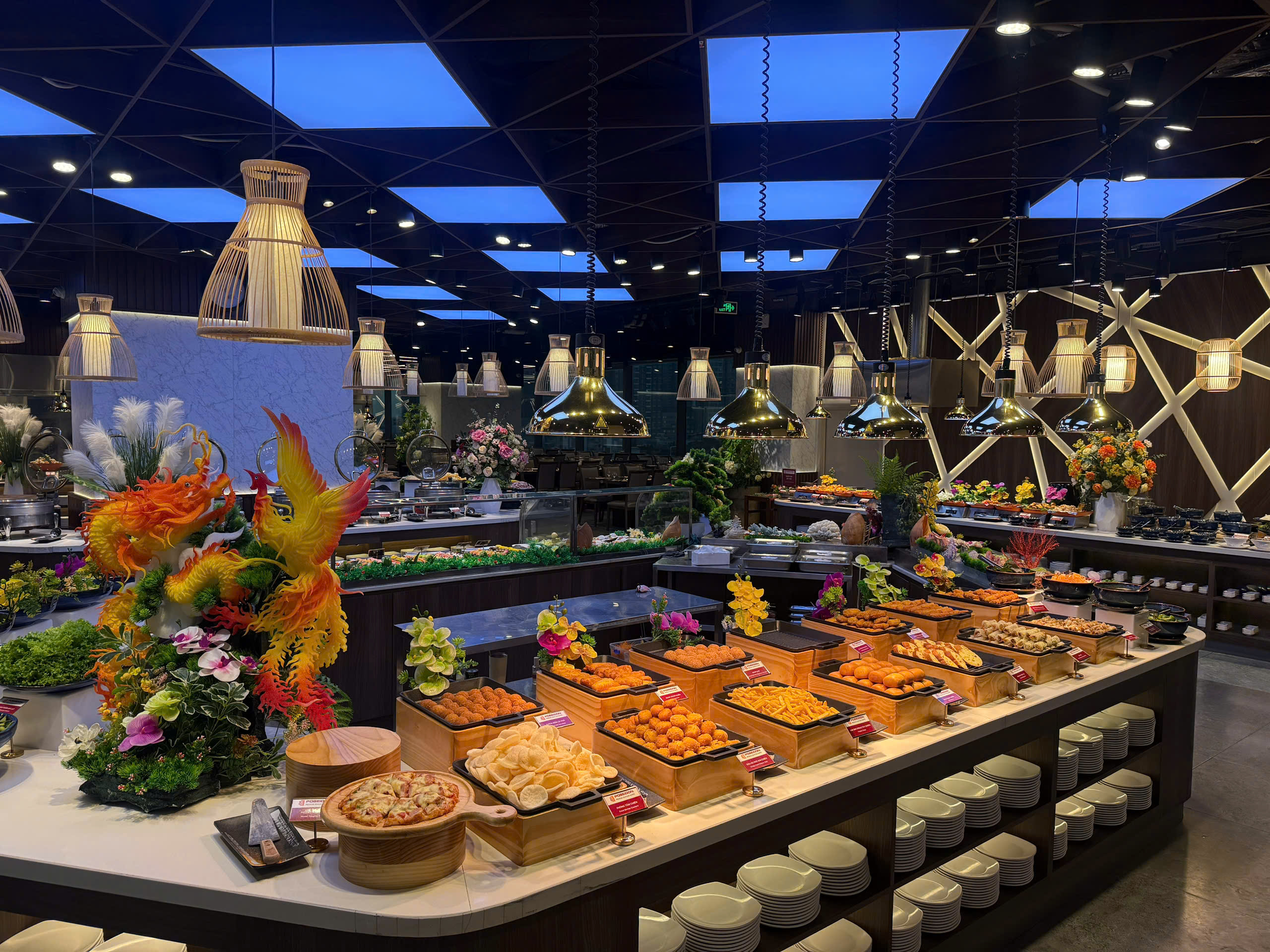 Điều khiến khách hàng nhớ mãi chính là quầy line buffet “khổng lồ” gần 200 món. Mỗi món ăn đều được chế biến và trình bày đẹp mắt, từ quầy quốc tế sang trọng với beefsteak, dẻ sườn sốt BBQ, sushi – sashimi, dimsum, cho đến quầy chợ quê đậm hồn Việt với bún ốc, bánh khọt, bánh xèo, phở bò…. Tuy nhiên, linh hồn của Poseidon vẫn là hải sản tươi sống – được lựa chọn kỹ càng và chế biến ngay tại quầy: Cua, ghẹ, tôm càng xanh, mực hấp, hàu nướng mỡ hành, sò lông, ốc hương, sò huyết, ngao hấp sả… luôn là những món “best-seller” mà bất cứ thực khách nào cũng phải gắp thêm lần hai.