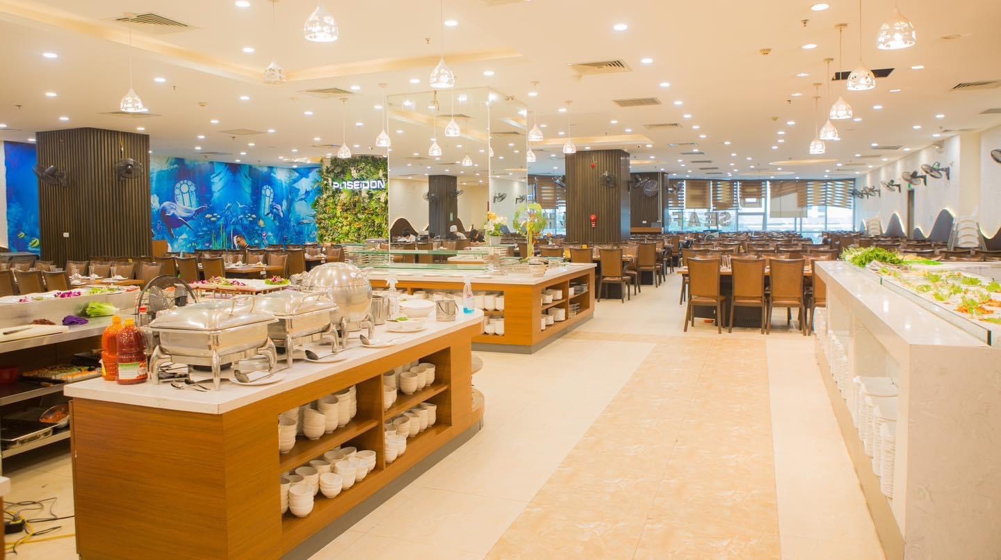 Điểm nổi bật ở cơ sở 1 Poseidon đó là nhà hàng có mặt cả tầng 4 và tầng 5 của toà nhà, thực khách có thể đặt bàn theo nhu cầu và mong muốn của mình, với tầm view rộng thẳng mắt, bắt được trọn vẹn những cung đường và toà nhà sầm uất. Thực khách đến dùng bữa tại Buffet Poseidon cơ sở 1 sẽ có những trải nghiệm ẩm thực vô cùng tuyệt vời.