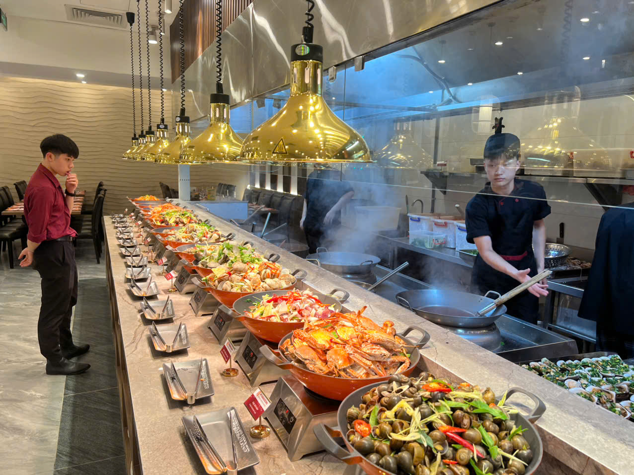 Quầy line nóng được nới rộng, dài tăm tắp và đa dạng các loại hải sản