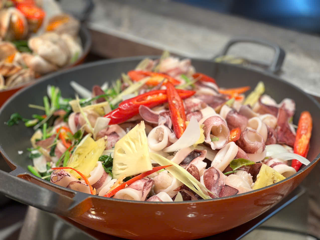 Các quầy line hải sản và đồ nóng được kéo dài và mở rộng, giúp hạn chế tình trạng đông đúc, đảm bảo thực khách có thể lựa chọn món ăn một cách thong thả.